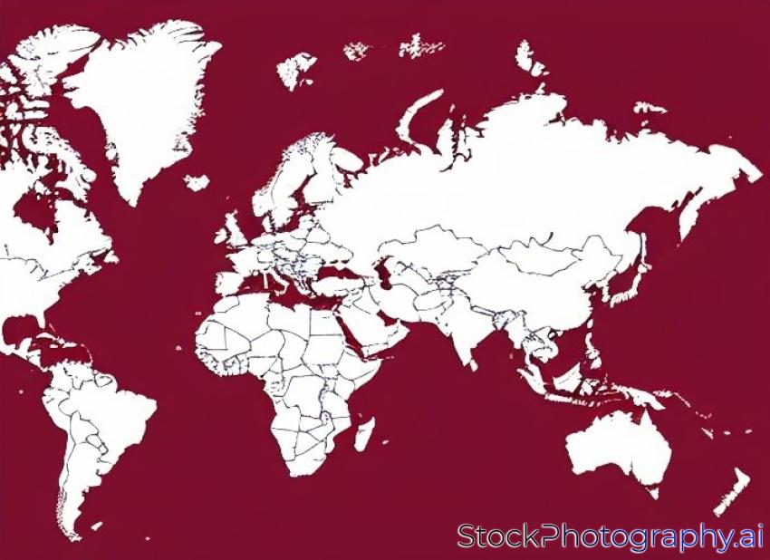 World Map on dark red background.