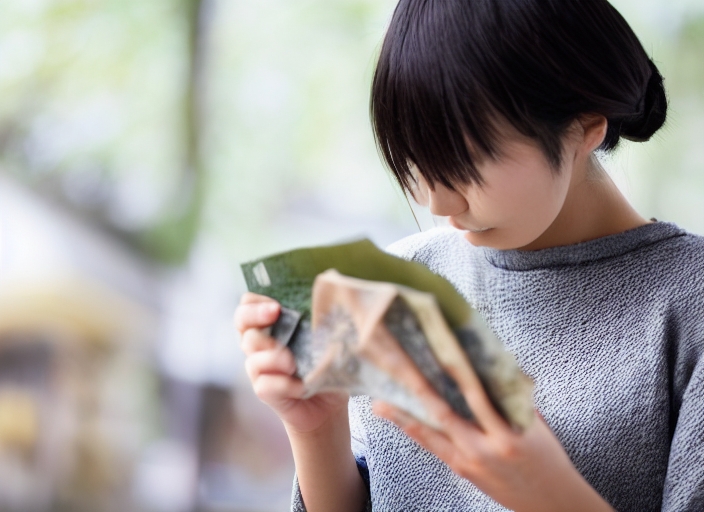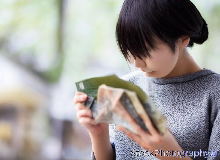 Young Japanese woman looking at her empty wallet