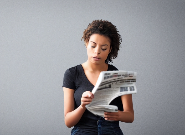 adult advertisement article background caucasian chair communication daily data female grey indoors information interest jobs journalism knowledge looking mass media message news newspaper page paper periodical person press print public publication reading report review sitting social sources story text wall woman young-