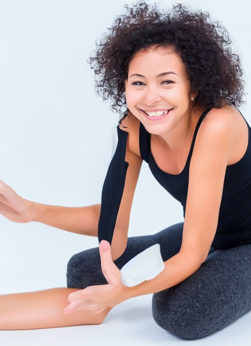 Young, happy woman stretching and looking at camera. Isolated on white in studio, front view. Whole body