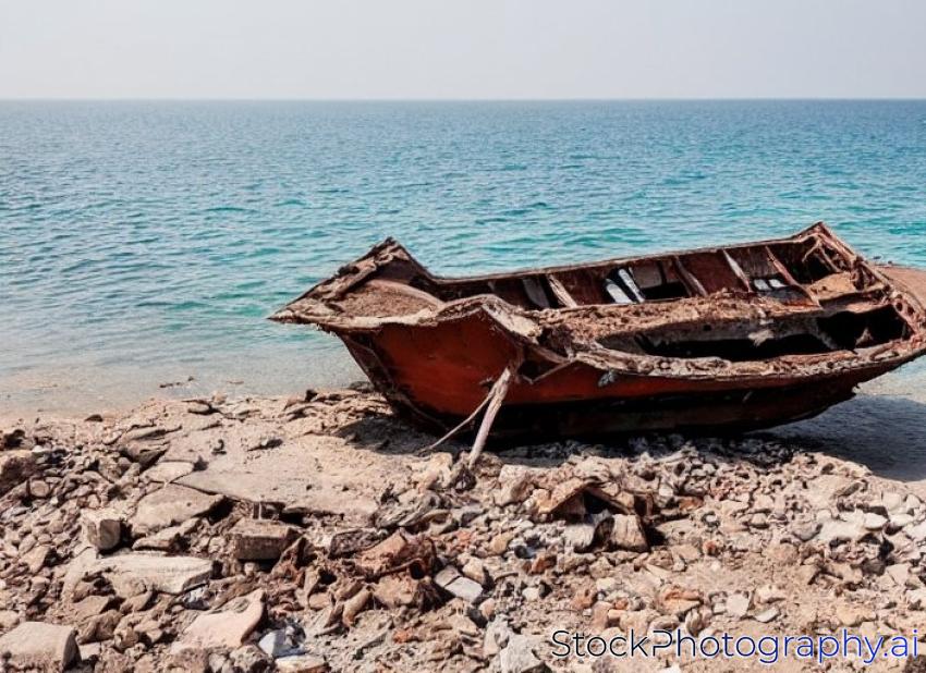 a decayed sunk boat in red sea, Jeddah, Saudi Arabia, 2019
