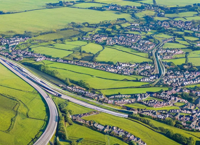 aerial view of a road by-pass around a town in East Yorkshire, UK