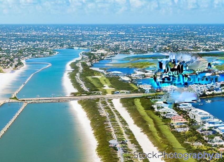 aerial view of atlantic ocean shoreline, intracoastal inlet and pier at boynton beach florida, with palm beach in the distance