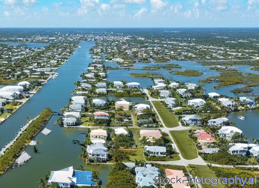 aerial view of southeast florida community on atlantic intracoastal waterway and ocean