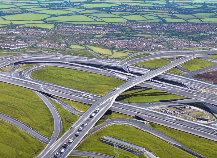 aerial view of the A1M M62 motorway interchange junction at Ferrybridge
