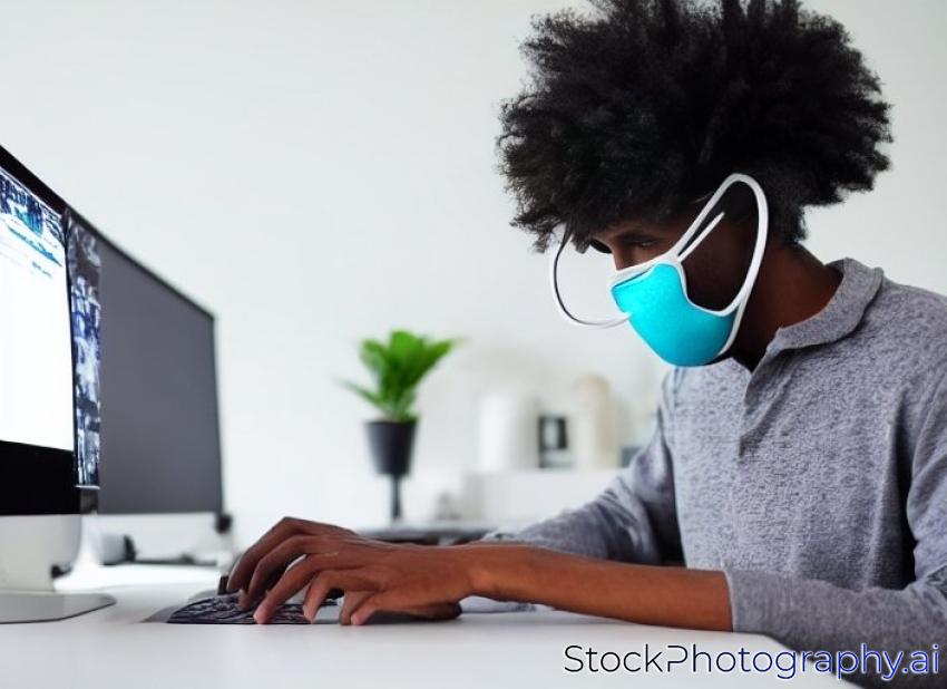 2019-ncov black woman blank screen blogger blogging blouse communication computer keyboard computer monitor concentrated connection copy space corona coronavirus covid-19 daylight digital devices epidemic equipment freelance freelancer gadgets girl home home office indoors internet medical mask medicine natural light networking one person online pandemic protective quarantine remote work self isolation sickness smartphone table technology tele worker type use virus white work from home-