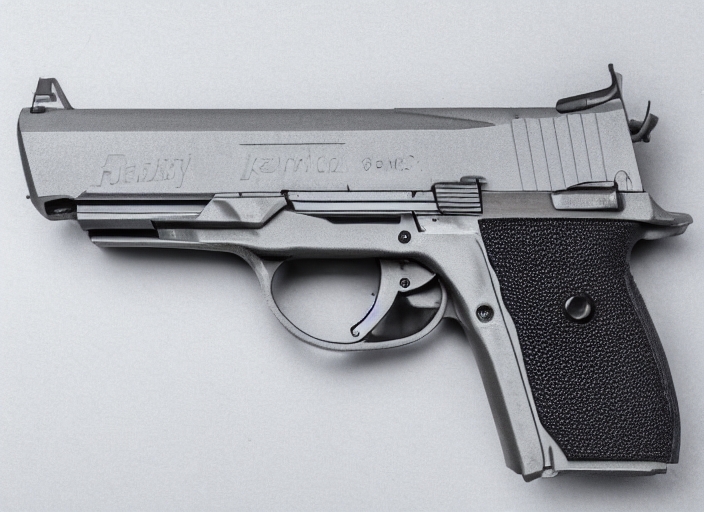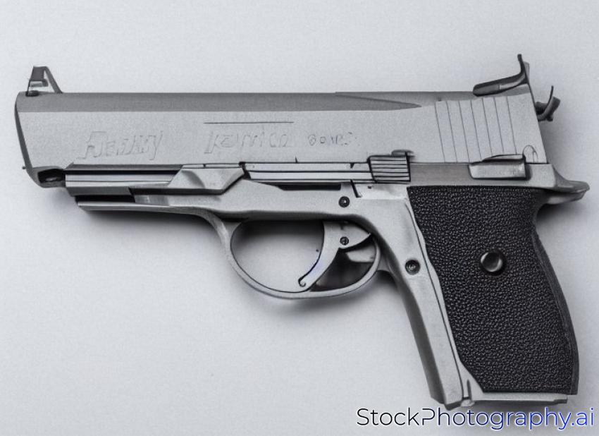 automatic 9mm. handgun pistol on white background.
