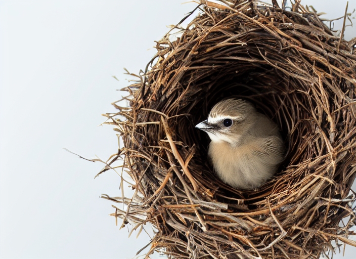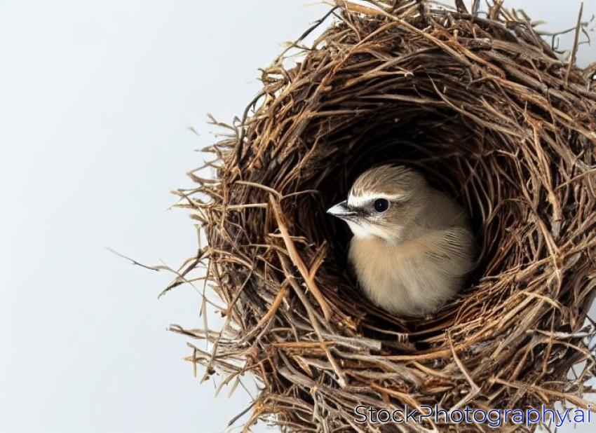 baby bird jay in a nest isolated on a white background
