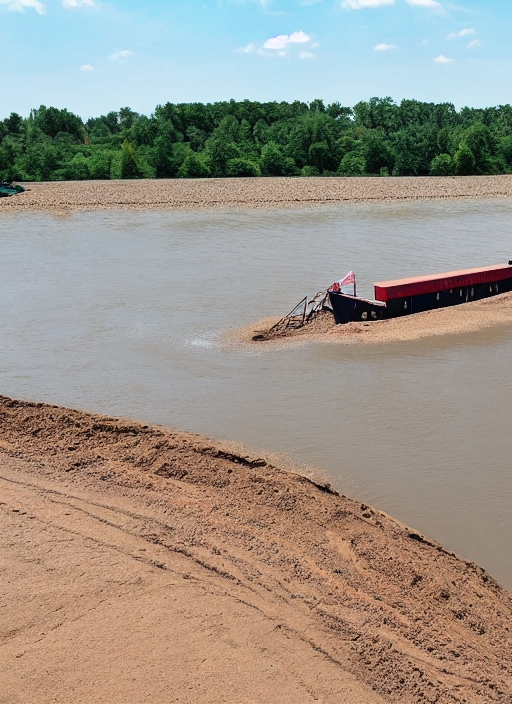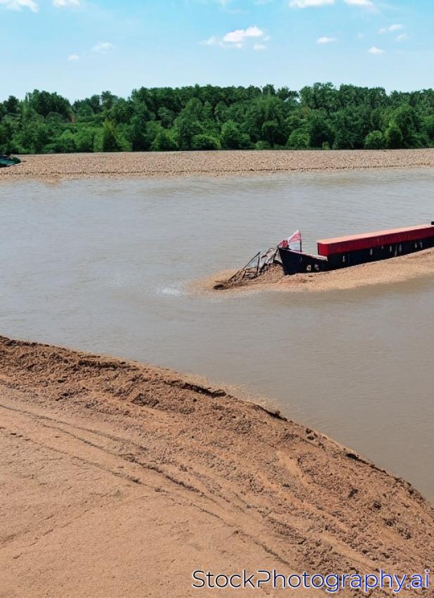 barge loaded with sand on the river