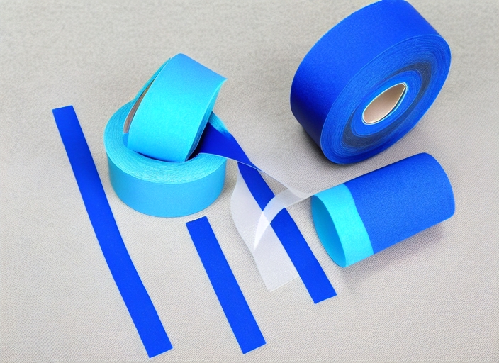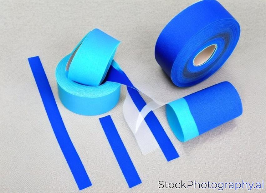 blue kinesiology tape. Physiotherapy and therapeutic tape for wrist pain, aches and tension. elastic therapeutic tape. adhesive tape and alternative medicine.