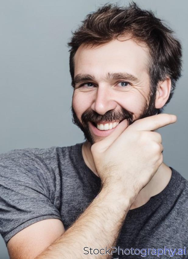 caucasian man unshaven beg smiling portrait isolated studio on black background