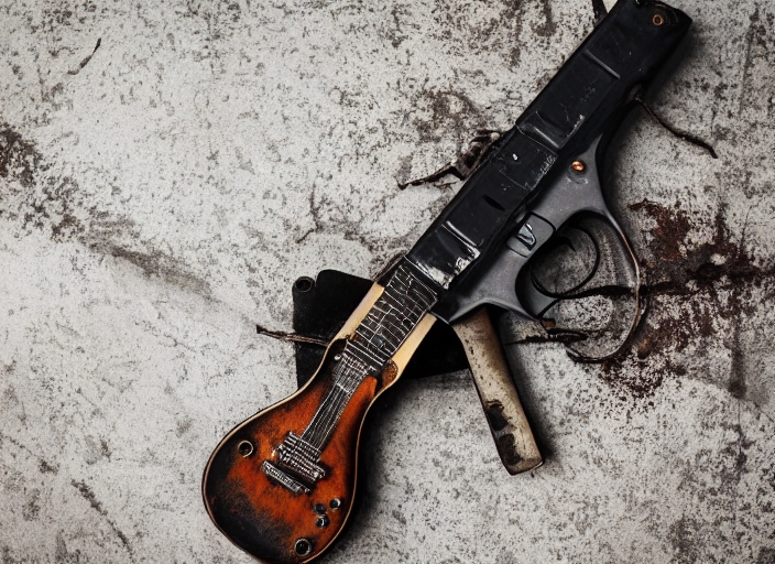 classic black pistol on rusty metal
