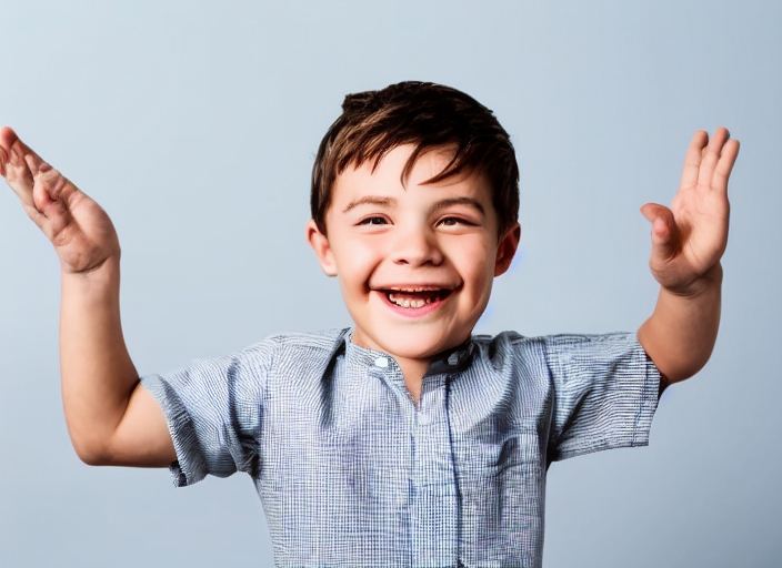 determined smiling boy with his hand forward to show his boundaries or playing give me five, isolated white background