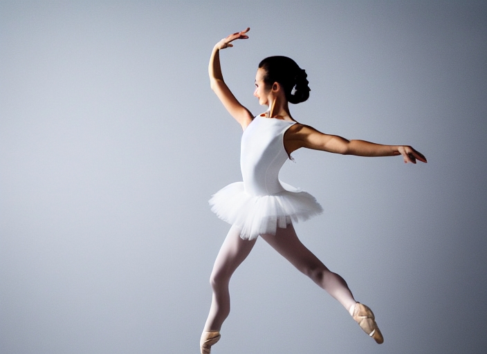 elegant ballet dancer in white dress jumping in studio, isolated on white