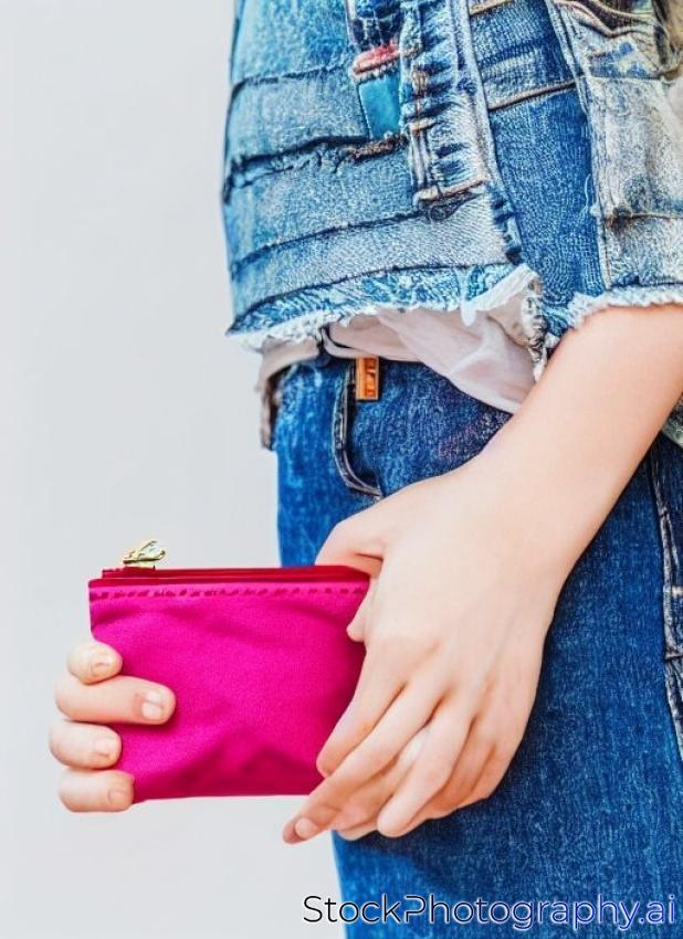 fashion model holding little purse posing