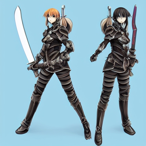female manga paladin with huge sword. 3D rendering with clipping path and shadow over white