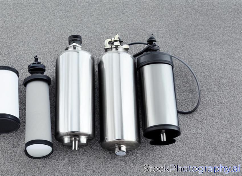 filter flask with replaceable cartridge carbon filter and key- system for water treatment isolated
