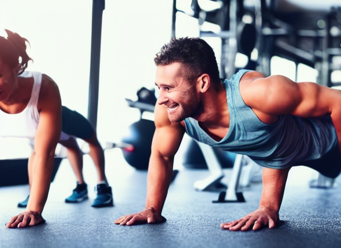 activity adults body bodybuilder coach couple doing exercise fit fitness floor friends gym happy health healthy hispanic latin leisure lifestyle loss man masculine muscles muscular people person personal pressure push push-ups pushups slimming smile sport sportswear sporty strength strong sweat together tracksuit trainer training two ups weight woman work workout-