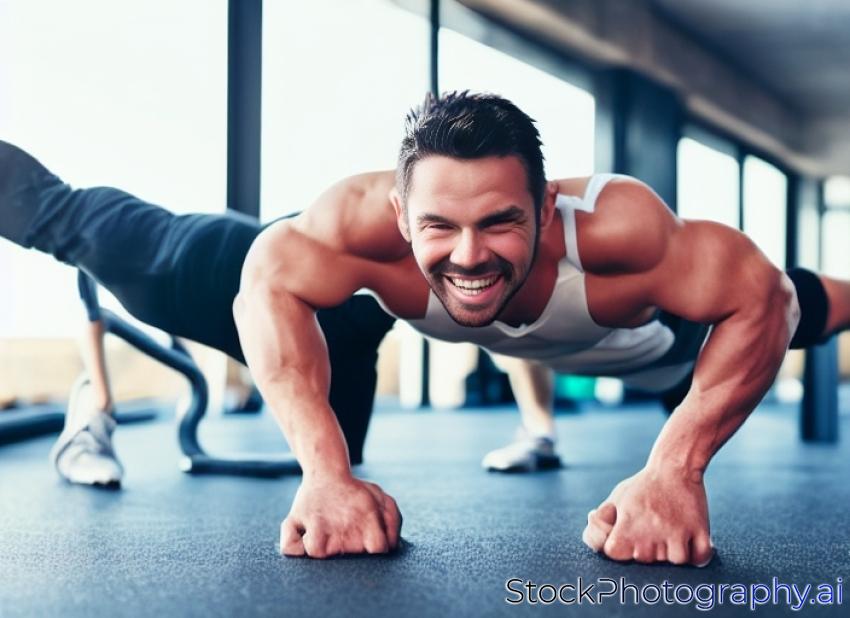 activity adult alone athletic attractive body bodybuilder determination doing exercise fit fitness floor gym happy health healthy leisure male man mat muscles muscular musculine person personal pressure push push-ups pushups smile sport sportive sportswear sporty strength strong sweat sweating tracksuit trainer training ups wear work workout-