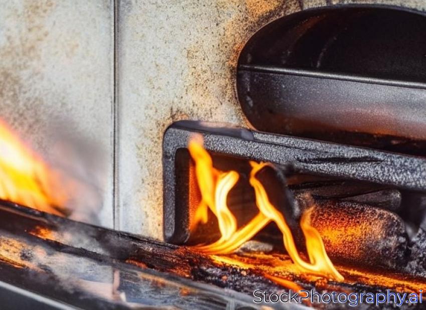 flames from a fire burning inside an oven