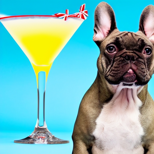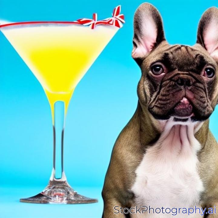 french bulldog with peace or victory fingers holding a martini , ready to toast, isolated on white background