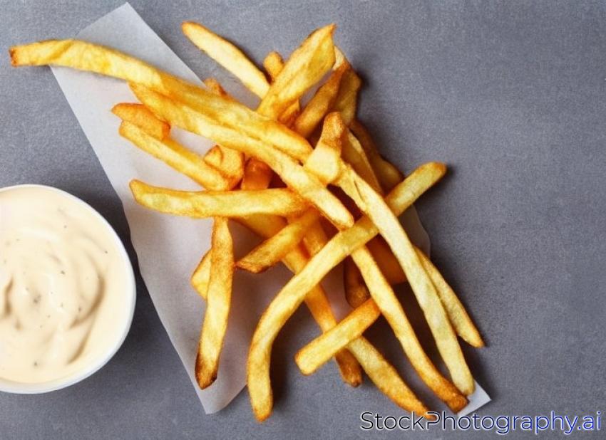 french fry with mayonnaise topping