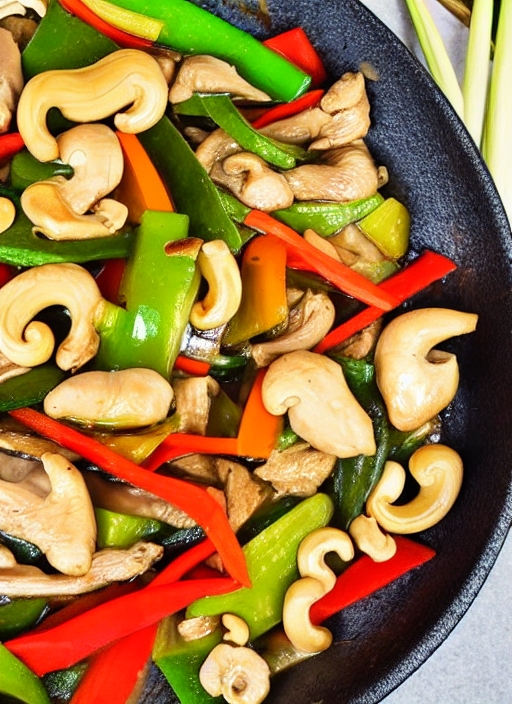 fresh chicken and vegetables stir fried with cashew nuts,typical chinese dish