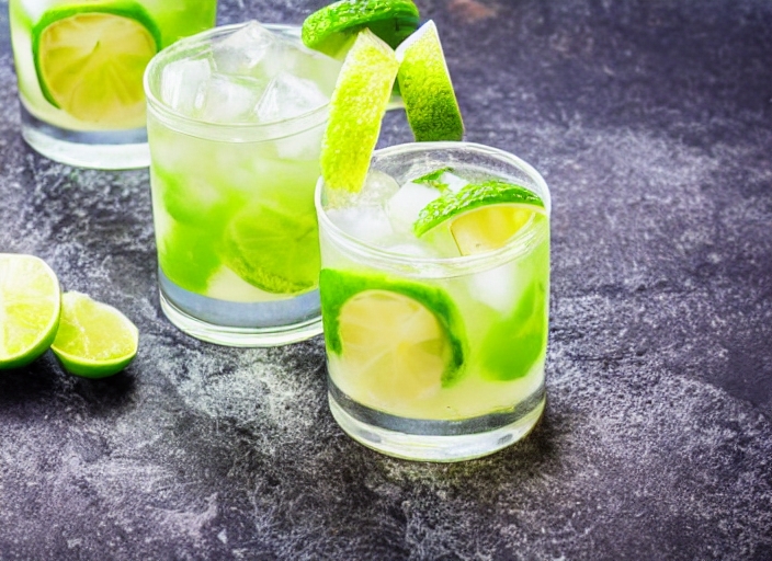 fresh summer alcohol caipirinha on a stone table. party beverage cocktail background