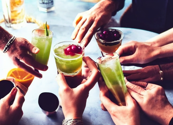 addicted addiction after age and aperitif bar beverage break business cheers cocktail color contrast drink enjoy four friends friendship hands jug life lifestyle lounge meeting mojito moment mug new nightlife opposite order over party people phone plan refusal restaurant reunion set sitting smart start still straw table technology time toast up view vintage waste wifi wood work youth-