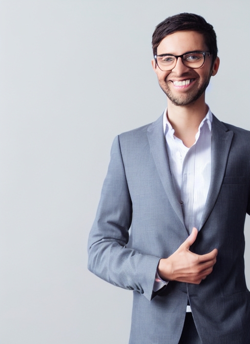 full length picture of a young business man standing with his both hands in his pockets while smiling for the camera. on white background