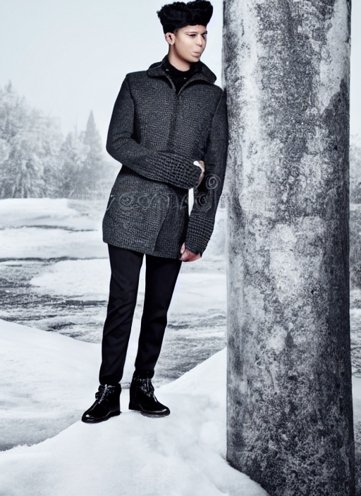 full length portrait of handsome young man with attitude, young male fasion model wearing winter's attire