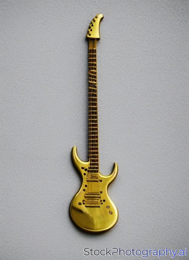 gold colored electric guitar hanging on wall