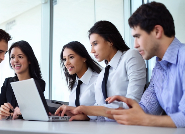 group of business people using laptop