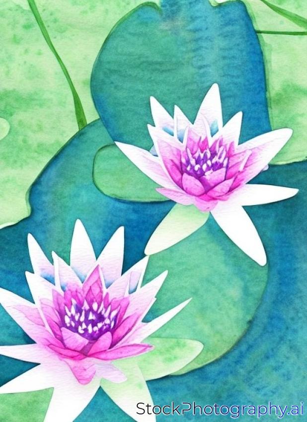 hand painted watercolor water lilies leafs. Modern design of stylized water and water-lilies