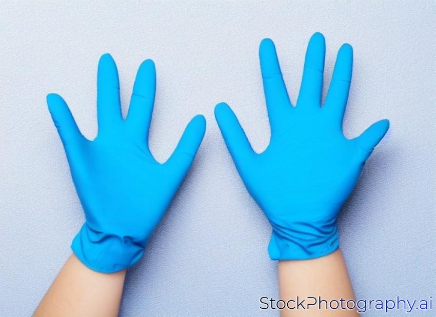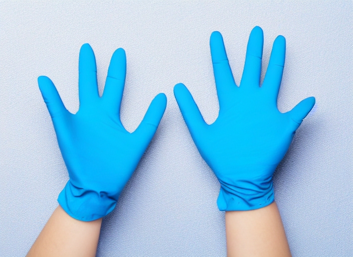 hand sign number one, two, three, four, five. hand in a blue nitrile glove isolated on a white background