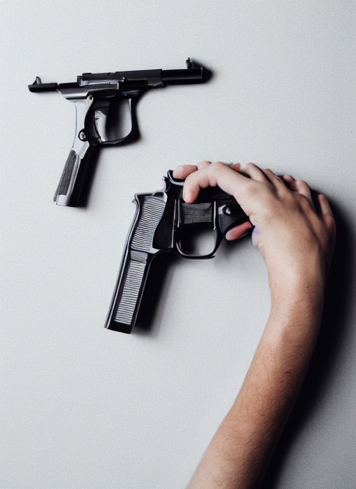 hand with a gun on a white background