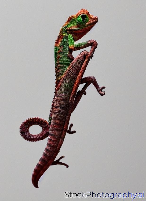 hanging chameleon isolated over white background