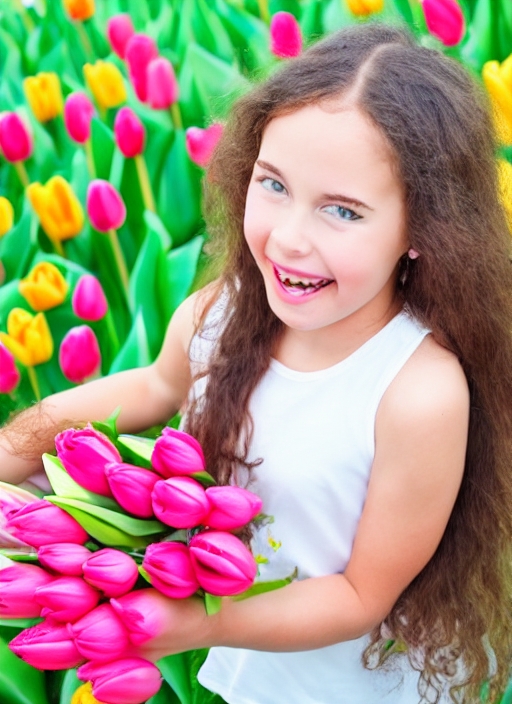happy little girl with tulips - mothers day concept