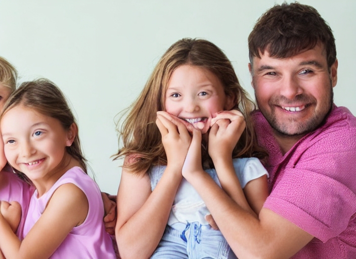 happy parents with little girls 4 and 6 years old indoors