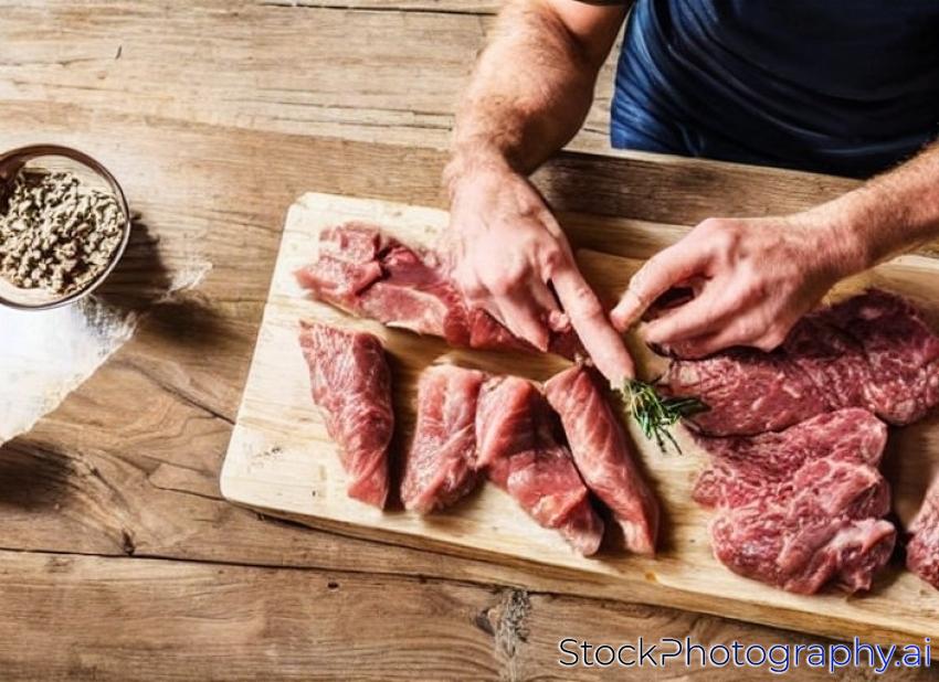 high angle view of a young caucasian man preparing some meat stuffed cannelloni on a rustic wooden table