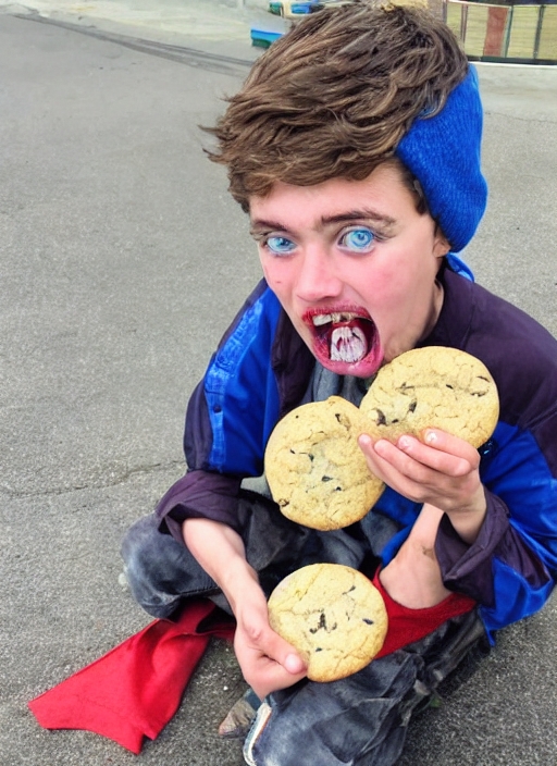 homeless boy eats cookies