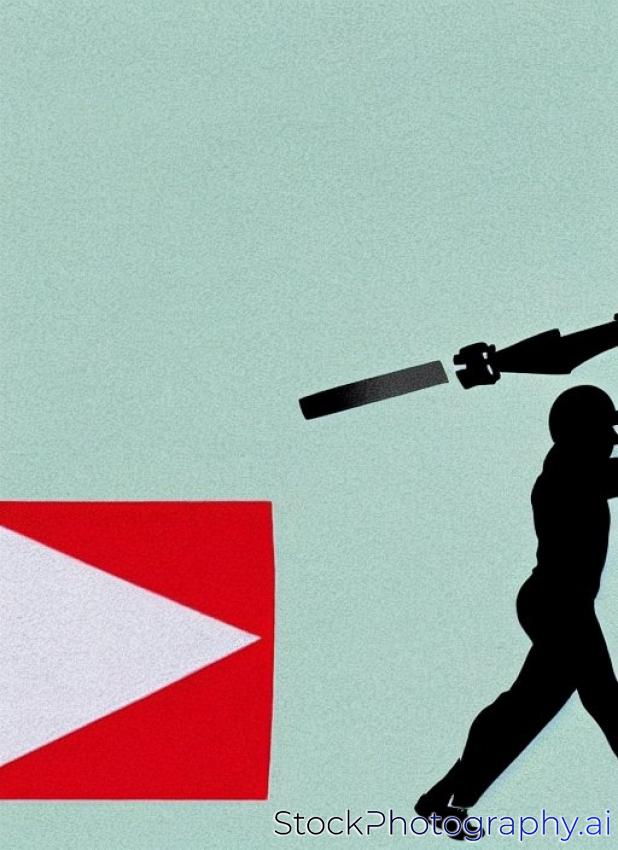 illustration of silhouette of cricket batsman batting front view with flag of Australia in background