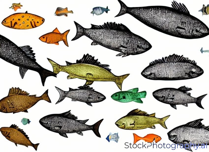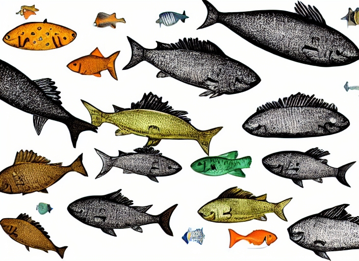 illustration of various fishes on white