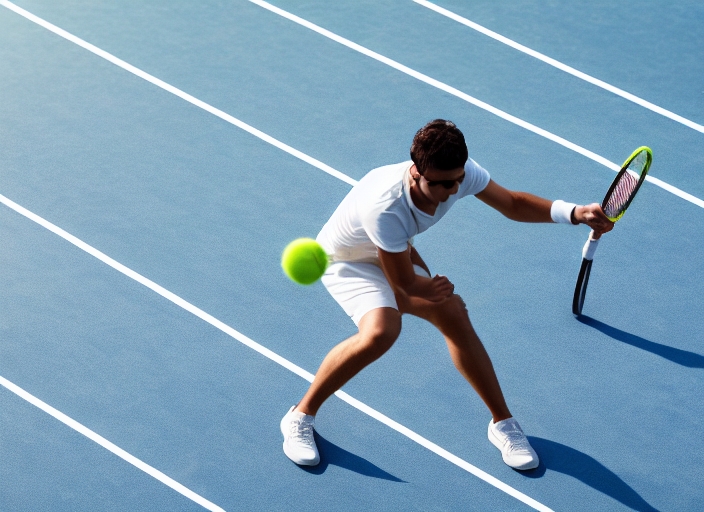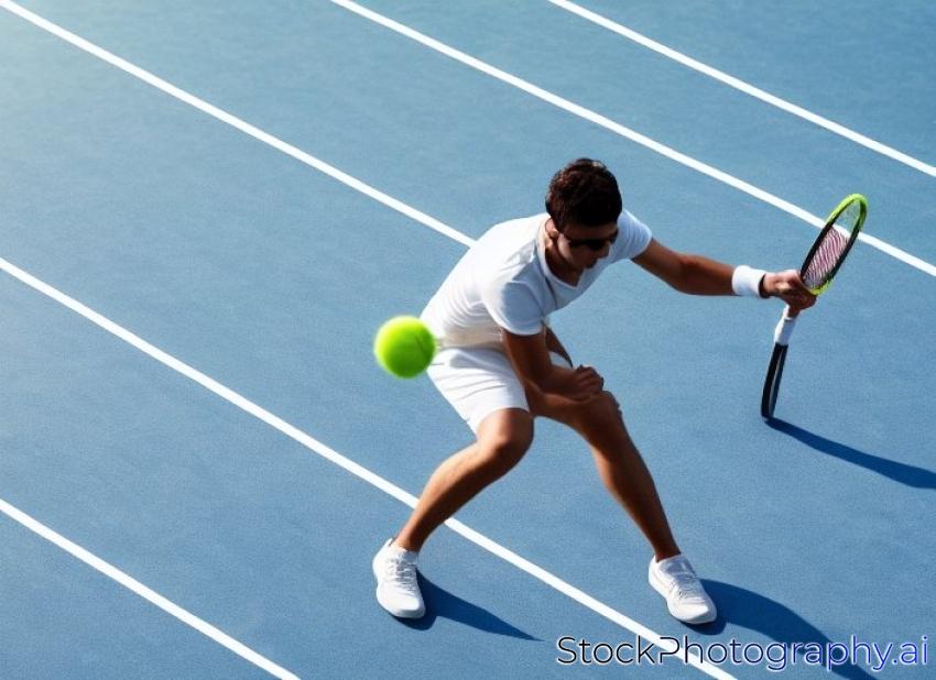 in action on a tennis court (conceptual image with a tennis ball lying on the court and the shadow of the player positioned in a way he seems to be playing it)