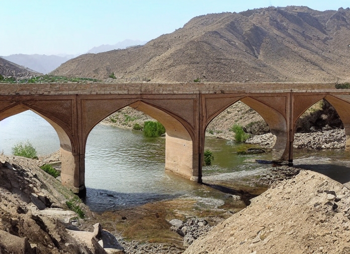 in iran the old bridge and the river antique construction near nature