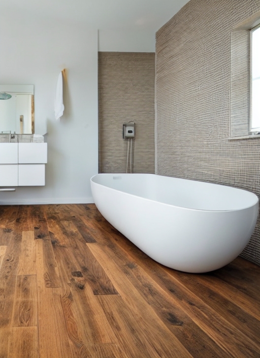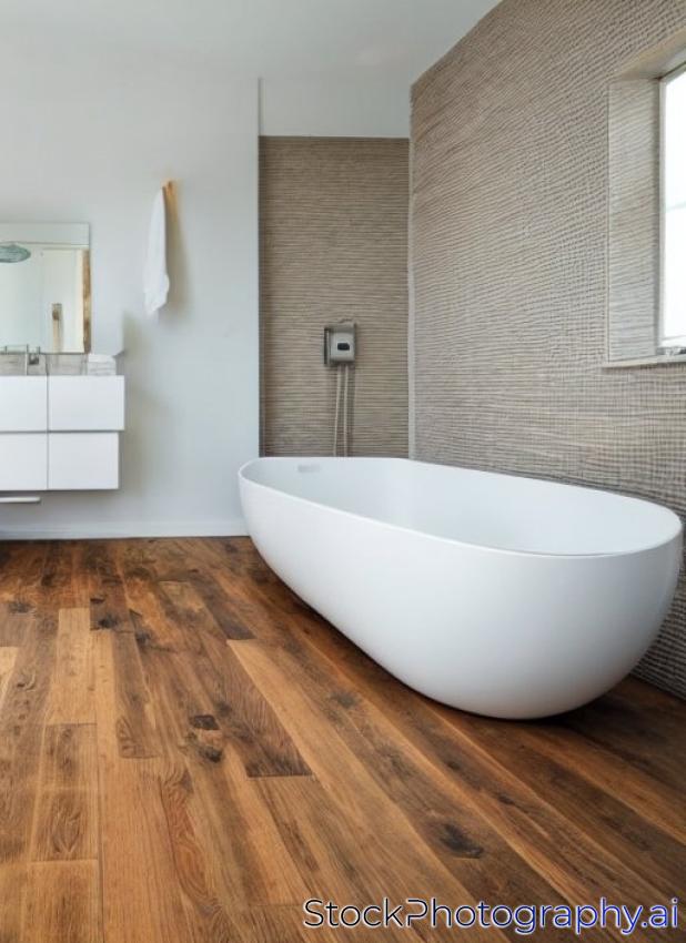 interior view of a modern bathroom with wood floor