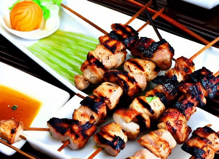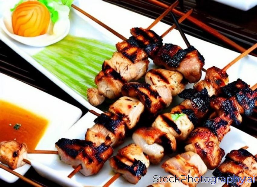 japanese cuisine, Yakitori liver. Grilled chicken "Yakitori". Yakitori ( Yakitori are grilled chicken skewers ).