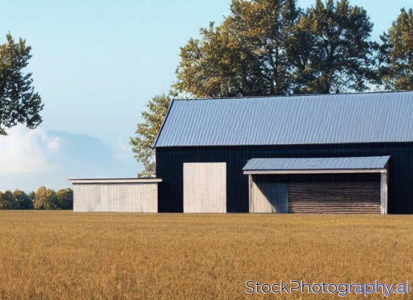 large modern barn with a horse