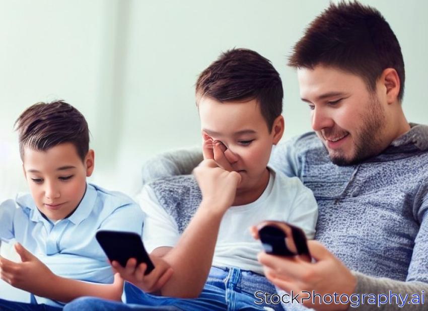 app application boy browsing cell cheerful child childhood communication concept connection couch family father fatherhood gadget generation happy hispanic home indoors internet kid latin leisure lifestyle living male man mobile networking online parent parenthood parenting person phone pre-teenager room single sitting smartphone smiling sofa son technology teenage together young-