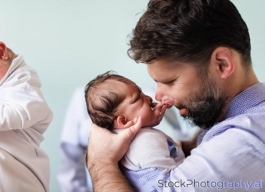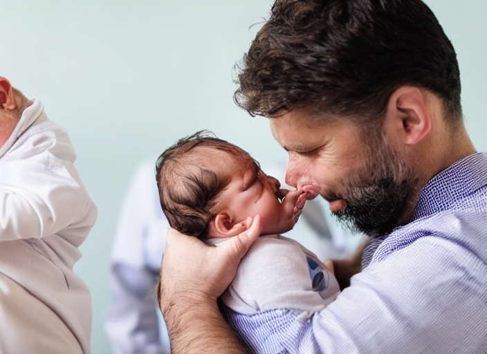 male pediatrician holding a crying baby boy